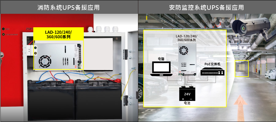 LAD系列采1U薄型機(jī)殼設(shè)計(jì),規(guī)劃有基礎(chǔ)款(LAD-120/ 240/ 360/ 600)及UART通訊款(LAD-360/600xU)兩種。此兩種版本共通規(guī)格特點(diǎn)有:主輸出(CH1)可供負(fù)載使用并內(nèi)建附屬輸出(CH2)可同時對電池充電、搭配電池可構(gòu)成UPS備援功能、CH1輸出電壓可調(diào) -20~+5%,可滿足不同電池種類及電壓微調(diào)需求、完整保護(hù)機(jī)制(短路/ 過載/ 過壓/ 過溫/ 電池欠壓/ 電池反接不壞)、通過CB/ UL/ CE/ UKCA/ EAC多國認(rèn)證并設(shè)計(jì)符合中國GB17945、GB4717(僅UART版本)消防法規(guī)…等,適用于安控、消防、緊急照明、警報(bào)、機(jī)房不斷電、門禁警報(bào)與中央監(jiān)控..等系統(tǒng)。